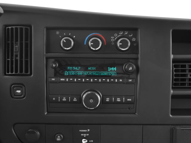 includes Bluetooth® streaming audio for music and select phones; Hands-Free smartphone integration with Pandora and Stitcher; voice-activated technology for radio and phone Includes (UBS) NavTraffic, (USR) USB port and (UPF) Bluetooth® for phone. CONVENIENCE PACKAGE, TILT-WHEEL AND (K34) CRUISE CONTROL, REAR PARK ASSIST, display integrated into rearview mirror, with 2 transmitters and remote panic button, MIRRORS, OUTSIDE HEATED POWER-ADJUSTABLE, BLACK, MANUAL-FOLDING, (285 hp [212.5 kW] @ 5400 rpm, 295 lb-ft of torque [398.3 N-m] @ 4600 rpm) (STD) (Includes external engine oil cooler. with overdrive tow/haul mode and internal transmission oil cooler (STD), STEERING WHEEL CONTROLS, MOUNTED AUDIO CONTROLS. Chevrolet Express Cargo Van with Summit White exterior and Medium Pewter interior features a 8 Cylinder Engine with 285 HP at 5400 RPM*.
