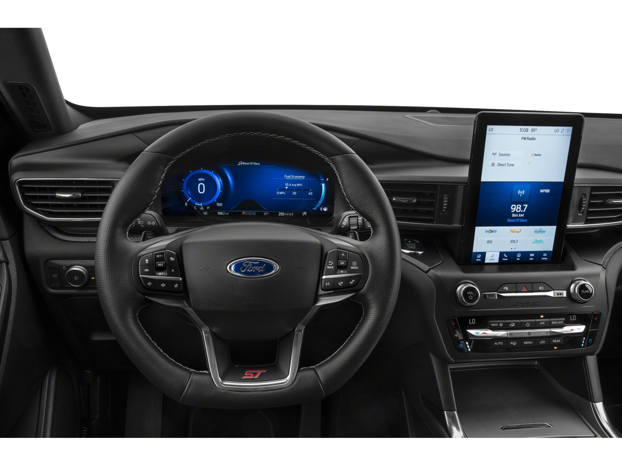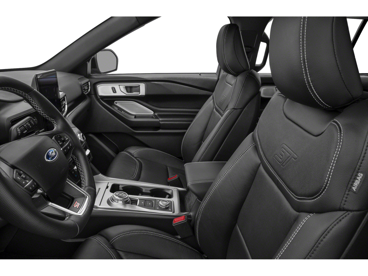 EQUIPMENT GROUP 401A ST High Package, ambient lighting, Memory Drivers Seat, Power Tilt/Telescoping Steering Column, Front Rain-Sensing Wipers, Hands-Free Foot-Activated Liftgate, Reverse Brake Assist, 360-Degree Camera w/Split View, Wireless Charging Pad, 110V/150W AC Power Outlet, Replaces the powerpoint port on the rear side of the center floor console, Radio: B&O Sound System by Bang & Olufsen, MP3 capability, 12 speakers, subwoofer, HD Radio, speed-compensated volume and SiriusXM radio w/a 3 month prepaid subscription, Service is not available in Alaska and Hawaii, Sideview Mirrors w/Gloss Black Caps, power-folding w/Autofold, power and heated glass, LED turn signal indicators, ST projection lamps, drivers side auto-dimming and driver and passenger side memory, Ford Co-Pilot360, TWIN PANEL MOONROOF remote control front windows (opens front windows from outside of the vehicle via the key fob), FRONT & SECOND ROW FLOOR LINERS (16B) standard front and second row black carpet floor mats w/city silver stitching, TRANSMISSION: 10-SPEED AUTOMATIC (STD), HANDS-FREE LIFTGATE DELETE. Ford ST with Agate Black exterior and Ebony interior features a V6 Cylinder Engine with 400 HP at 5500 RPM*.