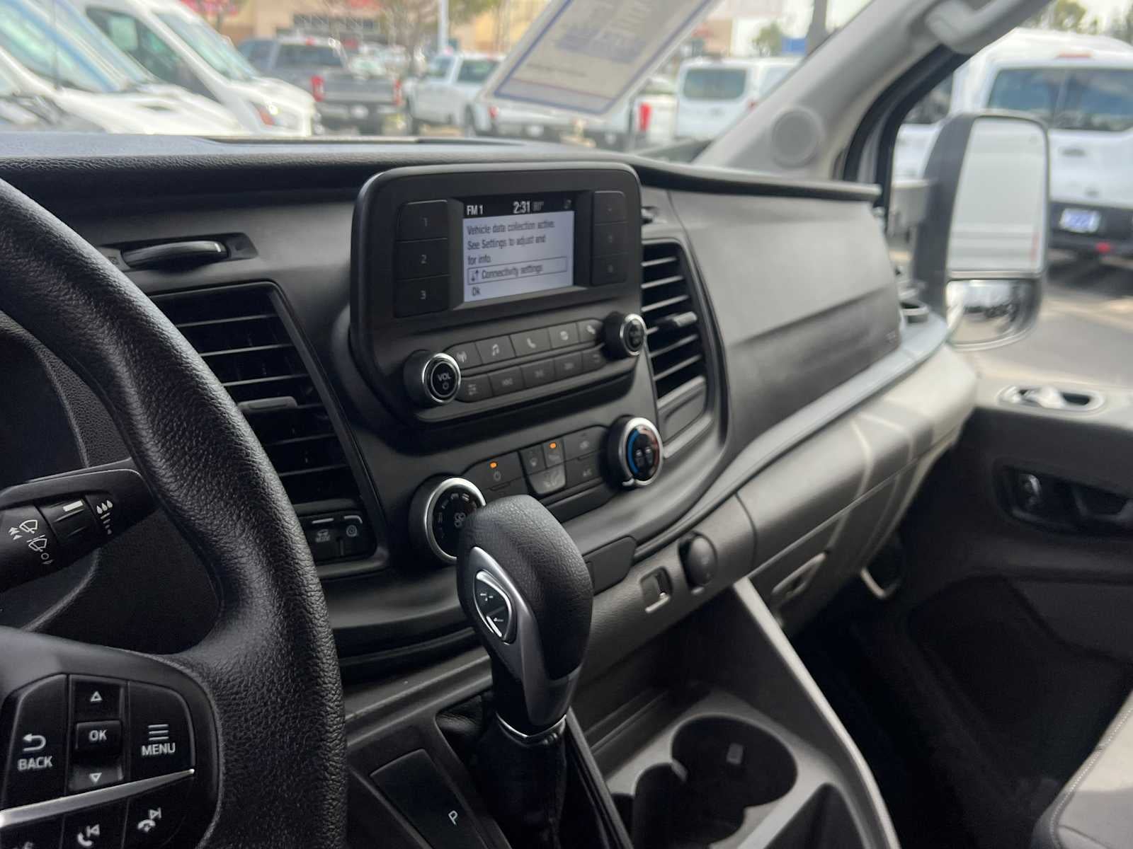 HEAVY-DUTY TRAILER TOW PACKAGE Deletes rear tow hook, 4/7 pin connector assembly and rear jumper and relay system for backup/B+/running lights, This package does not include a Trailer Brake Controller (67D), Additionally, if customer wants a trailer brake controller after initial purchase, it will have to be an aftermarket trailer brake controller and aftermarket wiring harness, Frame Mounted Hitch Receiver, Tow/Haul Mode w/Trailering Wiring Provisions, CRUISE CONTROL W/ADJUSTABLE SPD LIMITING DEVICE (ASLD) The ASLD feature is great for city driving; it allows the driver to set an upper speed limit for the vehicle, If the vehicle begins to approach the upper speed limit then audible and visual warning are given, REVERSE SENSING SYSTEM, LONG-ARM MANUAL-FOLDING HEATED PWR ADJUSTING MIRRORS turn signals, PERIMETER ALARM, DARK PALAZZO GRAY CLOTH BUCKET SEATS W/ARMRESTS 2-way manual driver seat w/lumbar and 2-way manual passenger seat, FRONT FOG LAMPS Auxiliary lamps that are generally integrated into the front fascia and designed to help illuminate the roadway during poor visibility, VEHICLE MAINTENANCE MONITOR engine hour meter, Depending on the engine, this feature will display engine hour meter, oil life, oil level and tire pressure status, FLEET SAFETY PACKAGE With this package, the safety features are set to ON w/no driver ability to change settings, Reverse Speed Limiter, Auto High Beam, Lane Keeping Aid, TRANSMISSION: 10-SPD AUTOMATIC W/OD & SELECTSHIFT auxiliary transmission oil cooler (STD). Ford Transit Cargo Van with Oxford White exterior and Dark Palazzo Gray interior features a V6 Cylinder Engine with 275 HP at 6250 RPM*.